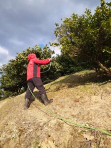 早朝の比較的涼しい時間帯(暑かった(>_<))にはっさく畑の消毒作業しました このような環境の良い場所ですくすくと育て上げています!!