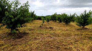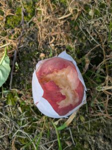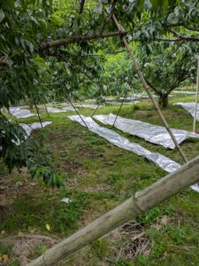 収穫の一週間前頃からシルバーシートを敷き、ツッパリ(補助支柱)支柱で枝を支えます。 実の重さで枝が折れてしまう事があるためです。 それでも強風により枝が折れて実…続きを読む