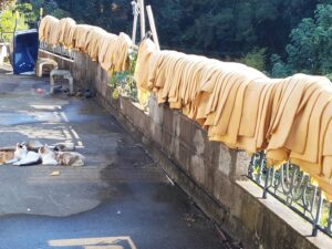 桃の木の下にシルバーシートを敷いて、桃の実を太陽🌄反射でより早く色づけて甘くなるようにします。 木々の下に敷き詰めたシート、土や枯れ葉を洗浄して…続きを読む